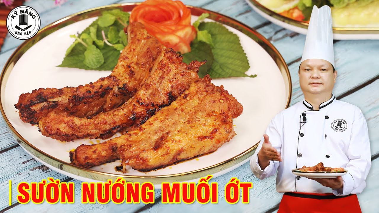 Sườn heo nướng muối ớt là món ăn không thể thiếu trong những bữa tiệc cuối tuần hay dịp đông đủ gia đình. Để chế biến, bạn cần chuẩn bị khoảng 1kg sườn heo non. Đầu tiên, rửa sạch sườn và chặt thành từng miếng vừa ăn. Tiếp theo, bạn xay nhuyễn 20g hành tím, 20g tỏi, 20g ớt cùng ½ muỗng canh muối, ½ muỗng canh hạt nêm, ½ muỗng canh đường, 1 muỗng cà phê tiêu, và 1 muỗng cà phê bột ngũ vị hương.