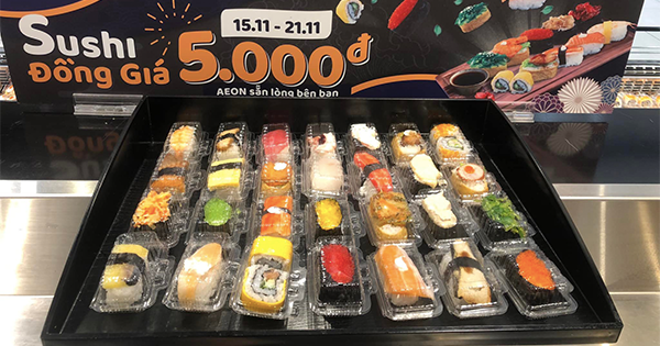 Nếu bạn là tín đồ của ẩm thực Nhật Bản, chắc chắn bạn không thể bỏ lỡ ưu đãi siêu hấp dẫn tại Siêu Thị AEON Hà Đông từ ngày 12.12 đến 18.12.2024. Trong thời gian này, hàng chục loại sushi ngon miệng, nổi bật với giá chỉ 4.900 VNĐ, đang chờ đón bạn. Đây quả thực là thiên đường cho những ai yêu thích sushi với nhiều lựa chọn như sashimi cá hồi, nigari cá hồi hay california cá hồi uyên ương.