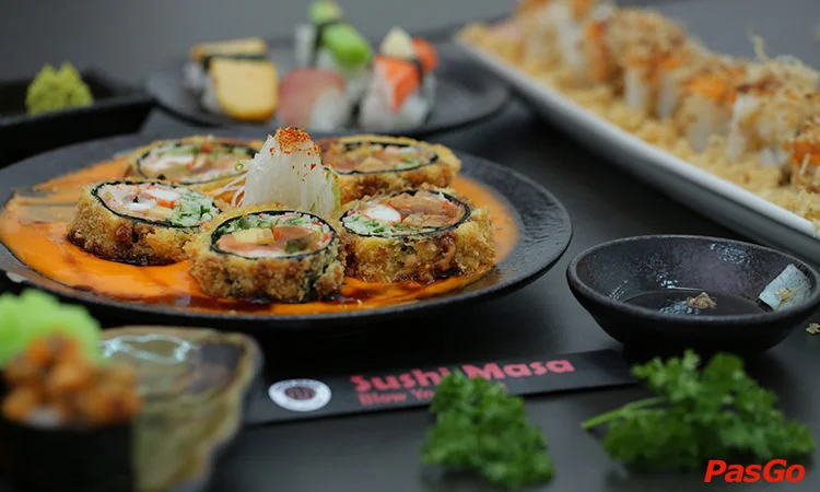 Không gian của Sushi Masa rất rộng rãi, phù hợp cho gia đình, bạn bè hay các buổi tiệc tùng. Thực đơn đa dạng với các món sushi và sashimi đặc sắc như sashimi cá hồi, sushi chiên cá hồi Spicy, hay hấp dẫn hơn cả là sashimi chiên xù hải sản tổng hợp. Chất lượng món ăn luôn được đảm bảo với sự chăm chút từ đội ngũ đầu bếp tài hoa.