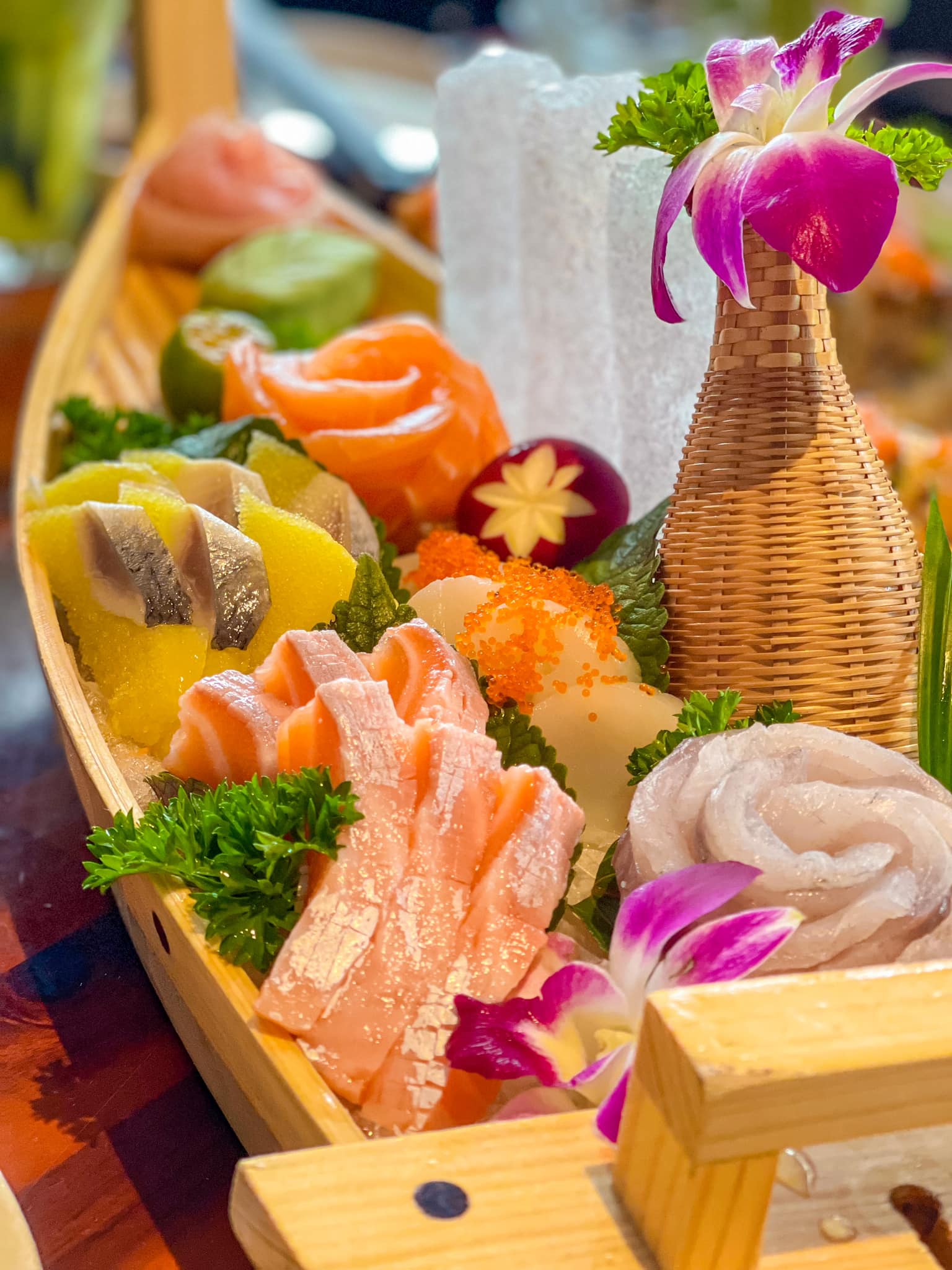 Thực đơn của quán rất đa dạng, từ sushi, sashimi tươi ngon đến các món nướng đặc sắc như tempura và lẩu. Nhân viên phục vụ ở đây luôn chu đáo và vui vẻ, góp phần tạo nên một trải nghiệm ẩm thực đáng nhớ. Bạn có thể thử những cuộn sushi sáng tạo đầy màu sắc hoặc các loại sashimi tươi rói, chắc chắn sẽ khiến bạn không thể quên.