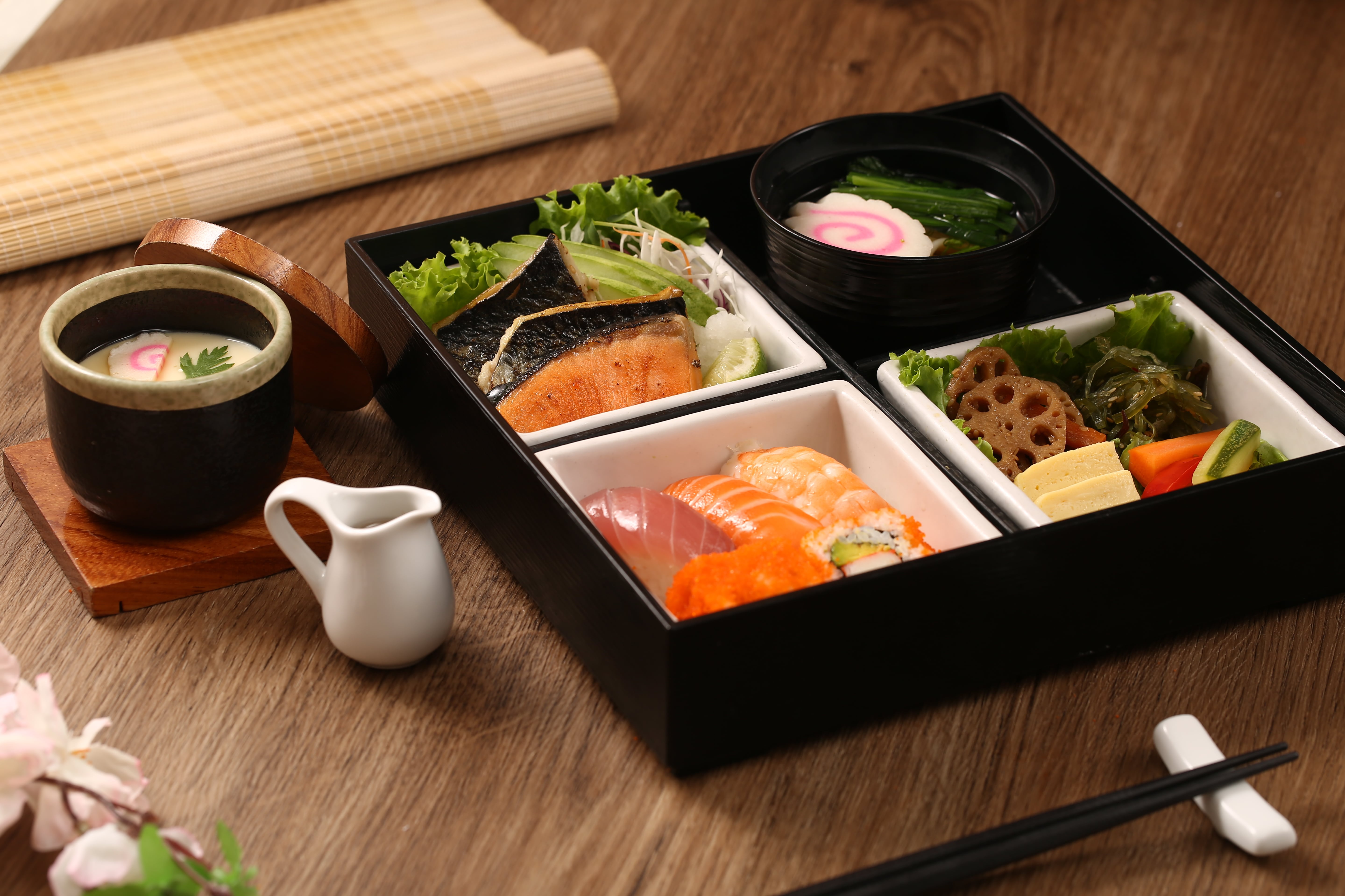 Đặc biệt, nhà hàng còn giới thiệu món bento cá hồi nướng với cơm trắng và sushi cực kỳ hấp dẫn, chỉ từ 159.000 ₫. Bạn cũng có thể thử các món bento thịt bò hay salad udon, nơi mà từng miếng ăn hòa quyện tạo nên hương vị tuyệt vời. Ngoài ra, các món ăn kèm như trứng hấp, salad và canh miso giúp bữa ăn trở nên trọn vẹn hơn.