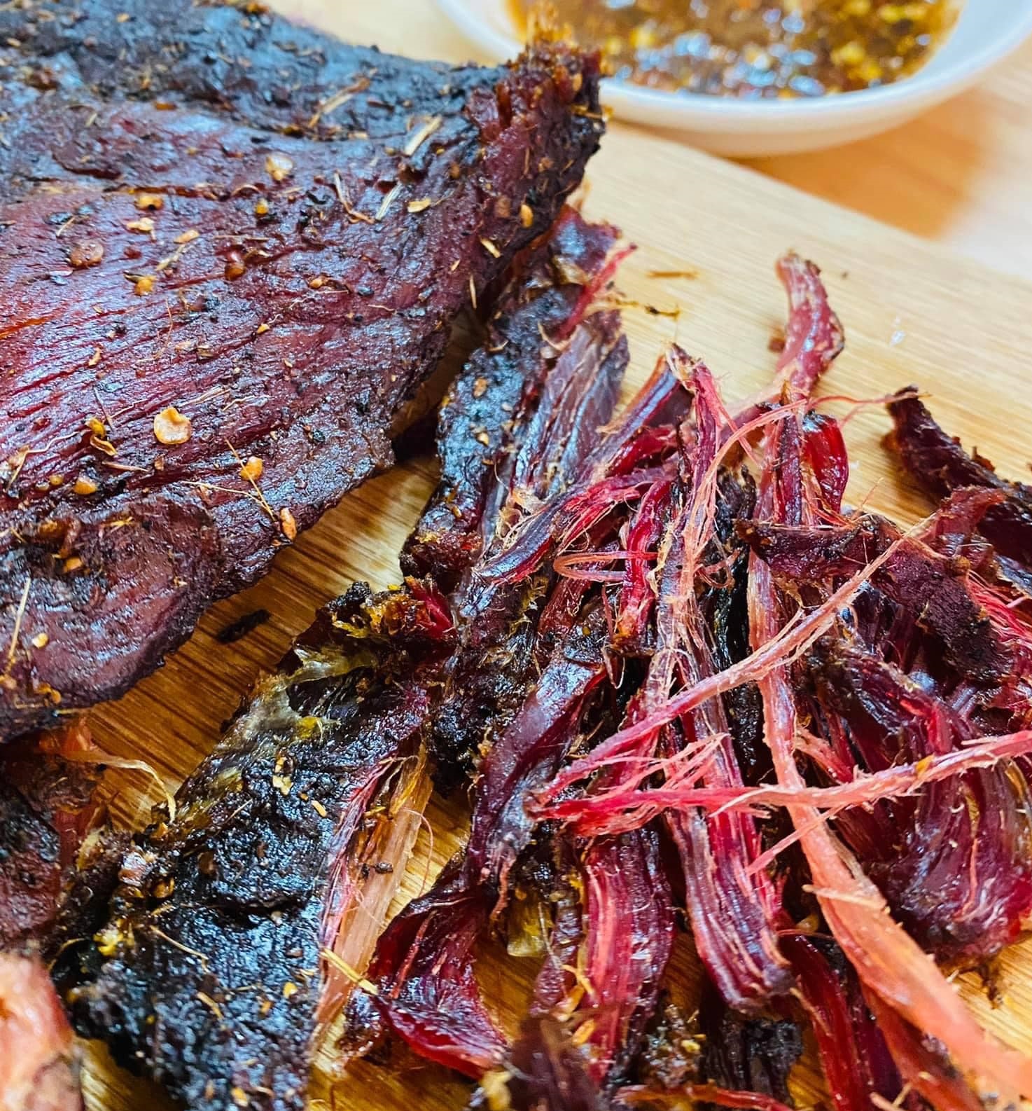 Nói về thành phần dinh dưỡng, 100g thịt trâu gác bếp cung cấp khoảng 20.4g protein, 1.4g chất béo và chỉ 0.9g carbohydrate. Mặc dù có lượng calo không quá cao, nhưng thịt trâu gác bếp lại chứa nhiều chất dinh dưỡng thiết yếu như canxi, sắt và magie, giúp bổ sung năng lượng cho cơ thể mà không lo tăng cân nếu bạn ăn điều độ.