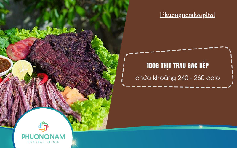 Thịt trâu gác bếp là một món ăn độc đáo và ngon miệng, nhưng nhiều người thắc mắc về lượng calo của nó. Theo thông tin, trong 100g thịt trâu gác bếp có chứa từ 240 đến 260 calo, tương đương với khoảng 1/10 nhu cầu calo hàng ngày của cơ thể. Điều này cho thấy món ăn này không quá “ngấy” trong chế độ dinh dưỡng, đặc biệt cho những ai đang mong muốn giảm cân hay duy trì cân nặng.