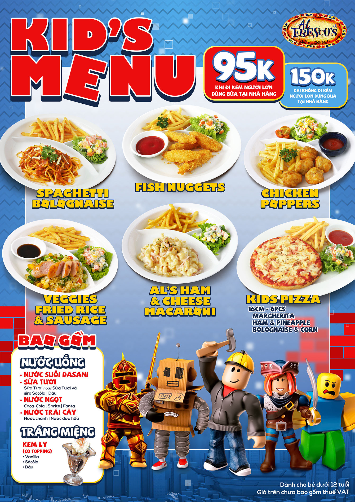 Không thể thiếu món chính như lẩu riêu cua hải sản hoặc bò hầm tiêu xanh, kết hợp với bánh mì thơm ngon. Bên cạnh đó, pizza phô mai kép và mì Ý sốt kem cũng chắc chắn sẽ được các bé yêu thích. Những món như gà rán, hamburger và sandwich mini cũng là lựa chọn tuyệt vời cho thực đơn.