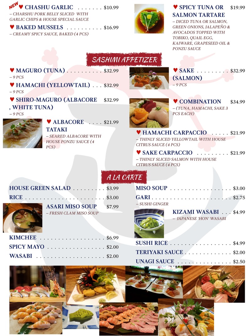 Trong số đó, Sashimi cá hồi, Sushi chiên cá hồi Spicy, và bộ Sashimi set là những cái tên nổi bật, luôn nhận được sự yêu mến từ thực khách. Không chỉ dừng lại ở các món cuốn quen thuộc, thực đơn còn đa dạng với Hàu Nướng Misoyaki hay Set Tàu Sashimi Titanic, hứa hẹn mang đến cho bạn những trải nghiệm vị giác không thể nào quên.
