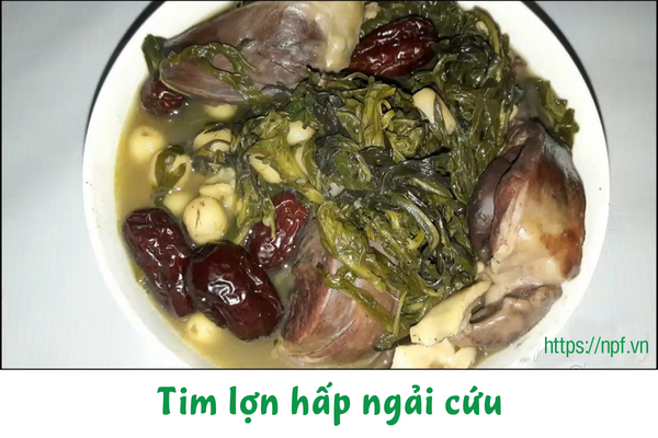 Khi chế biến, bạn hãy xếp một lớp ngải cứu vào đáy bát, sau đó cho tim heo đã ướp lên trên cùng với một vài quả táo đỏ đã rửa sạch. Món này không chỉ ngon mà còn bổ sung sắt, canxi, giúp ngăn ngừa thiếu máu sau sinh và hỗ trợ rất tốt cho sức khỏe của mẹ và bé.