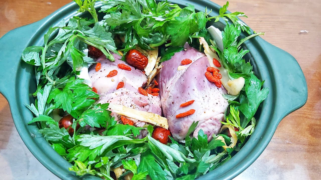 Sau khi đã ướp xong, hãy xếp tim heo vào một tô, thêm ngải cứu, táo đỏ cùng với chút hành khô và gừng. Tiếp theo, đậy kín tô lại và cho vào nồi hấp cách thủy khoảng 45 phút. Món ăn này sẽ hấp thụ được hương vị tự nhiên từ ngải cứu và táo đỏ, tạo ra một nước dùng cực kỳ ngọt thanh.