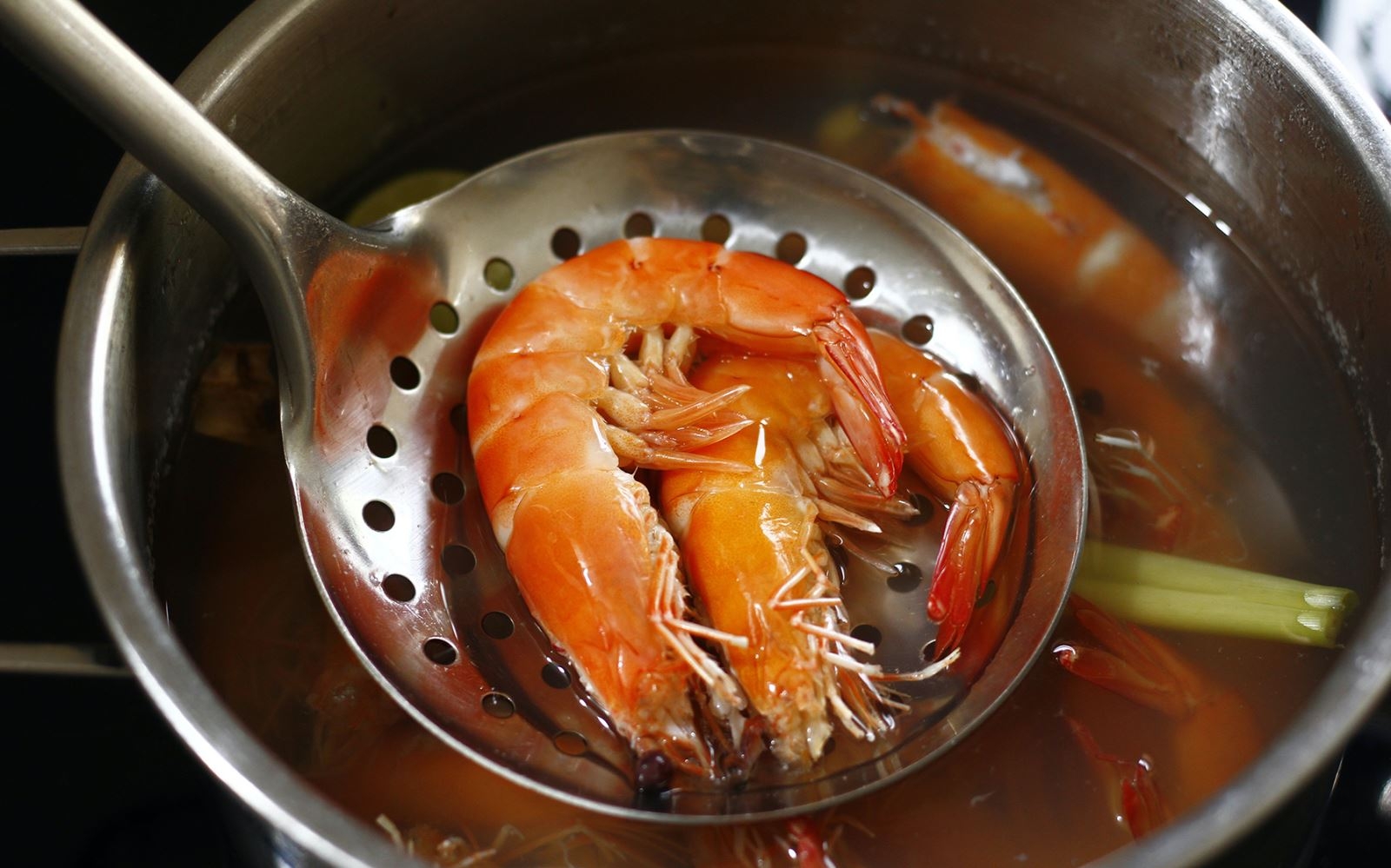 Khi thấy tôm đã chuyển màu đỏ tươi, bạn nên kiểm tra xem tôm đã chín chưa. Đặc biệt, không nên luộc quá lâu để tránh làm cho thịt tôm bị khô. Tuy nhiên, để tôm ngấm gia vị hơn, hãy để chúng lại trong nồi thêm 5 phút sau khi tắt bếp.