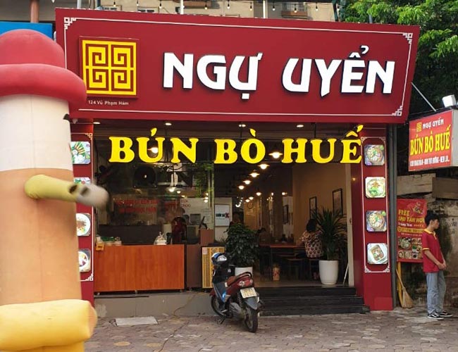 Những quán ăn muốn gắn logo “bún bò Huế” cần lưu ý phải xin phép trước để không vi phạm bản quyền. Logo thường được thiết kế độc đáo, có thể bao gồm hình ảnh của những sợi bún uốn lượn cùng đôi đũa, tạo nên cảm giác gần gũi và sống động. Điều này không chỉ làm tăng sức hấp dẫn mà còn thể hiện sự tinh tế trong từng chi tiết, khiến cho người xem cảm thấy hào hứng muốn trải nghiệm.