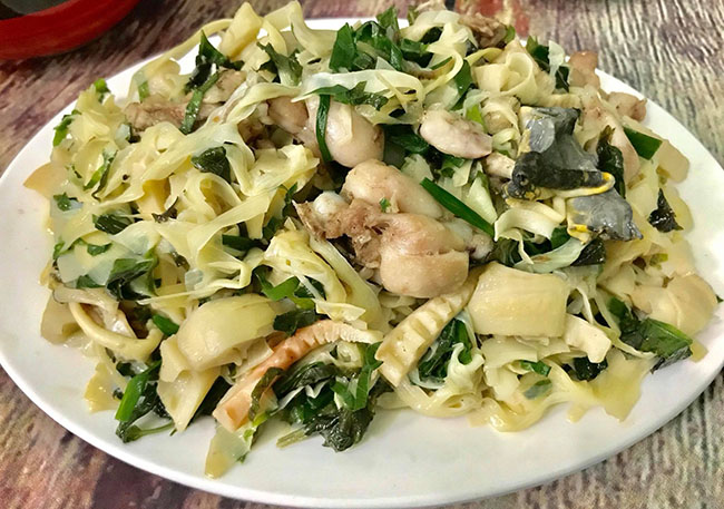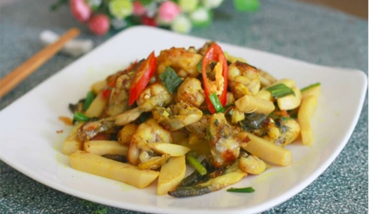 Món ếch xào măng là một trong những món ăn nổi bật, không chỉ thơm ngon mà còn dễ thực hiện. Đầu tiên, bạn cho măng chua vào chảo, thêm một ít dầu ăn rồi phi thơm hành tím và tỏi băm cho dậy mùi. Khi măng đã săn lại, bạn cho 100ml nước và 1 thìa canh dầu hào cùng 2 thìa cà phê nước mắm vào xào chung, khoảng 5-7 phút để nguyên liệu thấm đều gia vị.