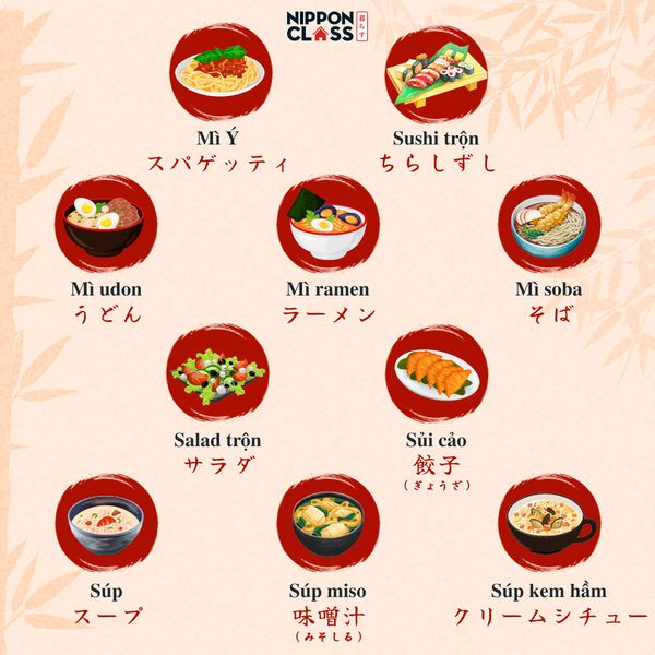 Ẩm thực Nhật Bản nổi tiếng trên toàn thế giới với những món ăn tinh tế, hấp dẫn và mang đậm nét văn hóa truyền thống. Để hiểu rõ hơn về văn hóa ẩm thực xứ sở hoa anh đào cũng như giao tiếp tự tin khi đi du lịch hoặc học tập tại Nhật Bản, việc trang bị vốn từ vựng liên quan đến món ăn là vô cùng cần thiết. Bài viết dưới đây sẽ tổng hợp đầy đủ các từ vựng về món ăn tiếng Nhật, tên các món ăn nổi tiếng, cách phát âm và phiên âm chi tiết giúp bạn dễ dàng ghi nhớ và sử dụng trong cuộc sống hàng ngày.