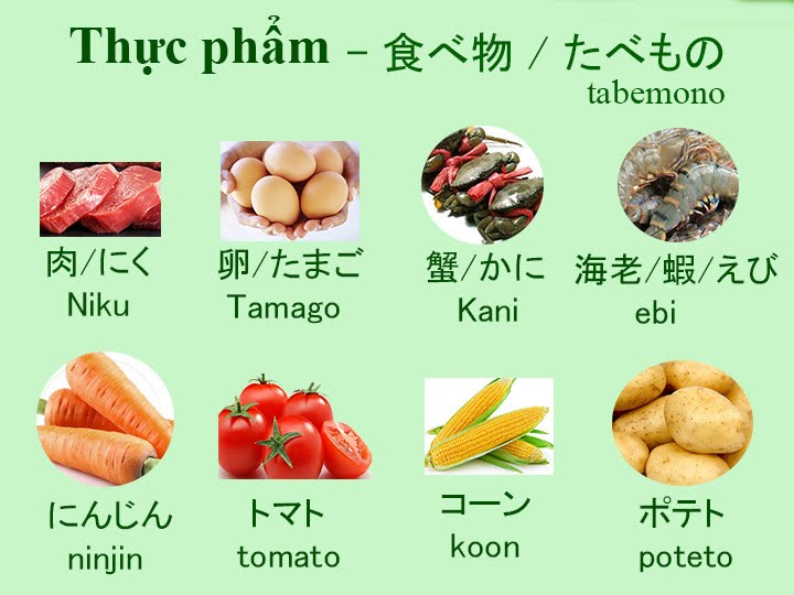 Từ vựng về ẩm thực trong tiếng Nhật rất phong phú và đa dạng, từ những món ăn truyền thống đến những món ăn hiện đại. Một trong những từ cơ bản nhất là 食べ物 (tabe mono), có nghĩa là thức ăn. Nếu bạn muốn tìm hiểu về ẩm thực Nhật Bản, bạn không thể bỏ qua 日本料理 (nihon ryouri), tức là nấu ăn Nhật hay thực phẩm Nhật Bản.