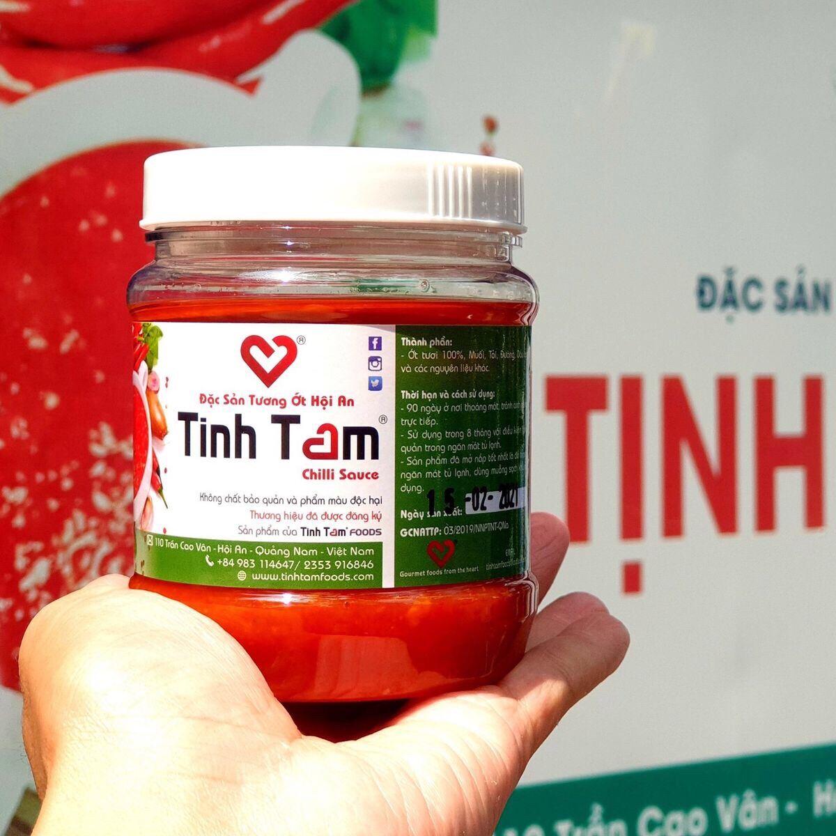 Hương vị cay nồng đặc trưng của tương ớt Tinh Tam khiến bất kỳ món ăn nào cũng trở nên hấp dẫn hơn. Không chỉ là gia vị chấm mà tương ớt Hội An còn là linh hồn, làm phong phú thêm hương vị cho những món ăn truyền thống của vùng đất di sản này. Với thành phần hoàn toàn tự nhiên, tương ớt được đóng gói trong các hộp 350g và 530g, đảm bảo không có chất bảo quản hay phẩm màu độc hại.
