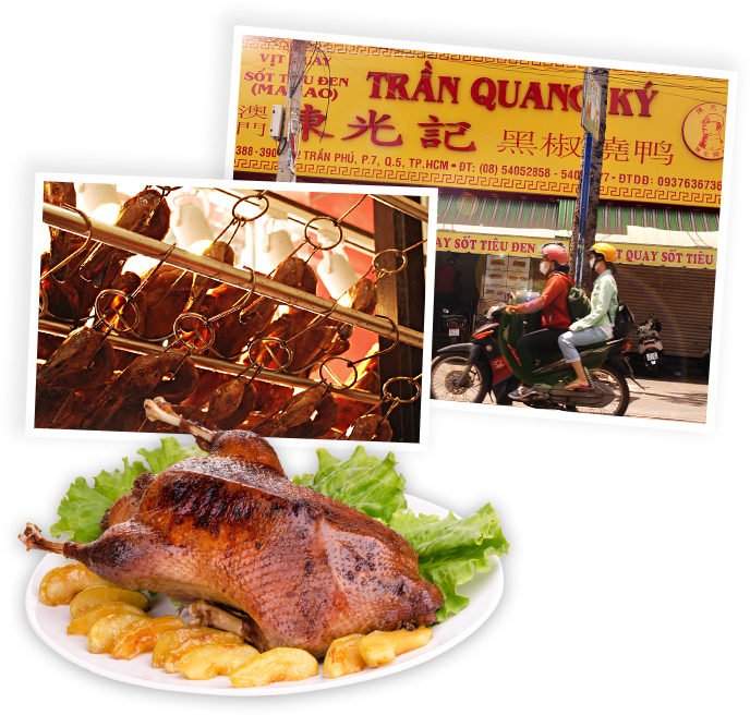 Vịt Quay Sốt Tiêu Đen là một món ăn không thể bỏ qua dành cho những ai yêu thích ẩm thực đặc sắc. Khi đặt chân vào tiệm Trần Quang Ký, bạn sẽ được thưởng thức vịt quay theo phong cách MaCau, với lớp da giòn tan và thịt mềm mọng. Để làm món này, vịt tươi ngon được làm sạch và ướp với các gia vị như tiêu sọ, hành tím băm, sốt tiêu đen và mật ong, tạo nên hương vị đặc trưng không thể nhầm lẫn.
