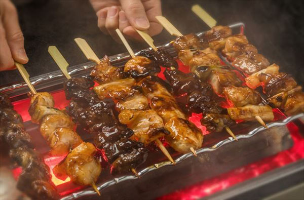 Gắp xiên Yakitori nóng hổi thưởng thức